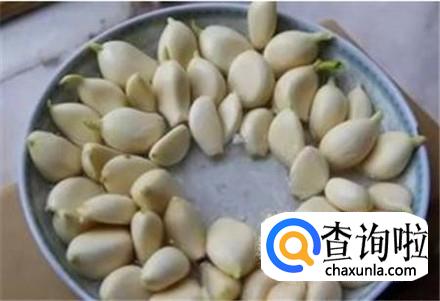 大蒜分成一瓣瓣的,将那些多余的蒜皮扯去不要了。