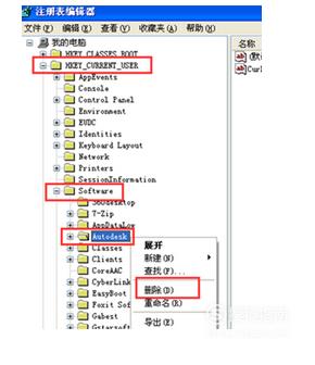 点开始-运行-输入rededit,然后找到AutoCAD的注册表删除掉即可再次安装,如图所示。