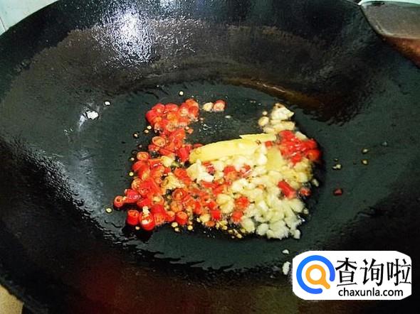加入辣椒,花椒,姜末,爆炒