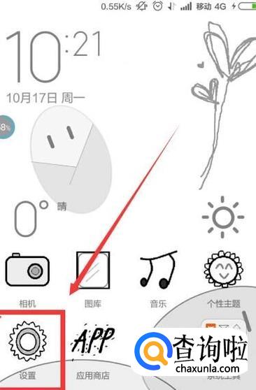 在小米手机主页面然后向下拉动屏幕,找到设置或是滑动手机屏幕,找到“设置”,进入到设置页面。