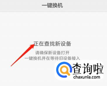 这个时候手机就会自动搜索新的设备,屏幕上面也会显示“正在查找新设备”,然后就等旧手机一键换新的接入啦!