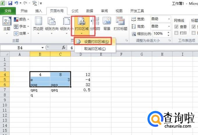 然后我们点击打印区域的下拉箭头,然后我们点击设置打印区域;