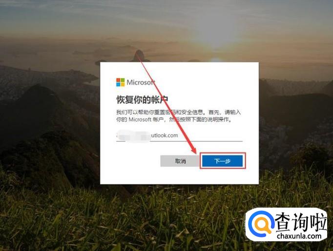 在新打开界面中输入outlook邮箱账号,点击下一步。