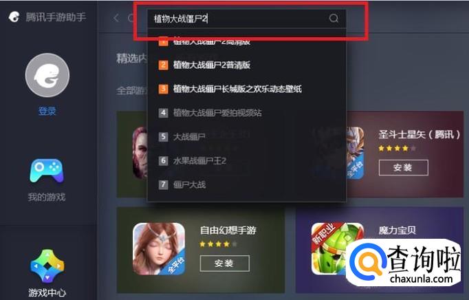安装完成后,打开腾讯手游助手,在最上方的搜索栏中输入“植物大战僵尸2”,按下“Enter”键。