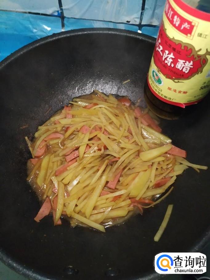 加入少许清水,防止粘锅,出锅前,再加入适量陈醋提鲜。