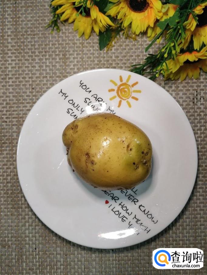 准备一个土豆,用清水洗净备用,再准备一根香肠备用。