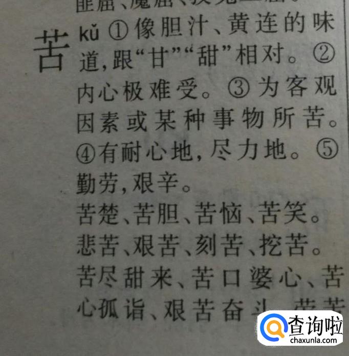 “苫”和“苦”:第一个字叫shan,第二个字叫ku。它们两个之间只相差一个短横线,意思可是大不相同哦,苫的意思是用席子,布等遮盖。苦的意思是像胆汁,黄连的味道,和“甜”相对。