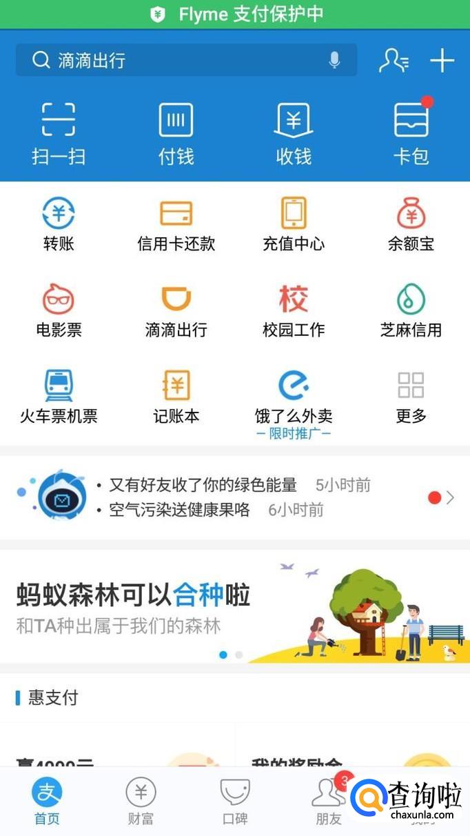 打开手机然后找到手机中的支付宝,点击打开支付宝进入支付宝首页。