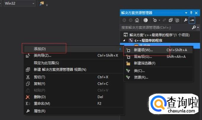 右击头文件,选择添加->新建项,如图。