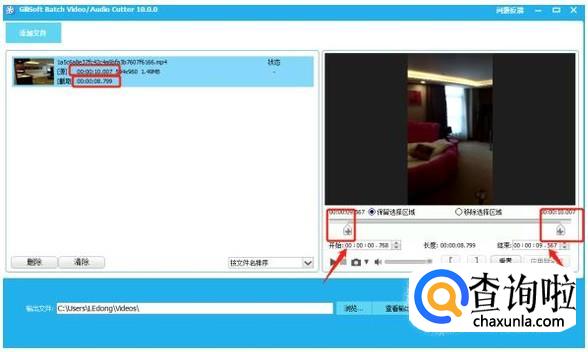 小编选择的这个视频中的房间好想说一下啊,真的很大,才两百多块钱一晚,还没住过呢,好可惜。视频是十秒的,右测面板中,我们可以拖动进度条,截取开始时间一秒,结束时间一秒,左侧面板可看到截取八秒时间。