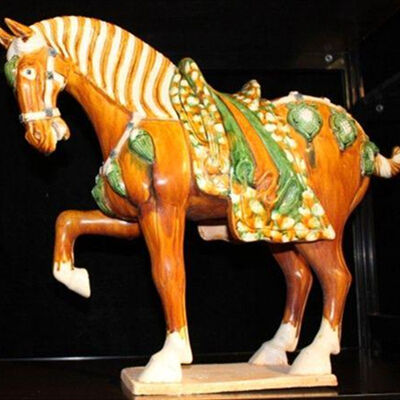唐三彩的生产已有1300多年的历史。它吸取了中国国画、雕塑等工艺美术的特点。唐三彩制作工艺复杂,以经过精细加工的高岭土作为坯体,用含铜、铁、钴、锰、金等矿物作为釉料的着色剂,并在釉中加入适量的炼铅熔渣和铅灰作为助剂。先将素坯入窑焙烧,陶坯烧成后,再上釉彩,再次入窑烧至800℃左右而成。由于铅釉的流动性强,在烧制的过程中釉面向四周扩散流淌,各色釉互相浸润交融,形成自然而又斑驳绚丽的色彩,是一种具有中国独特风格的传统工艺品。