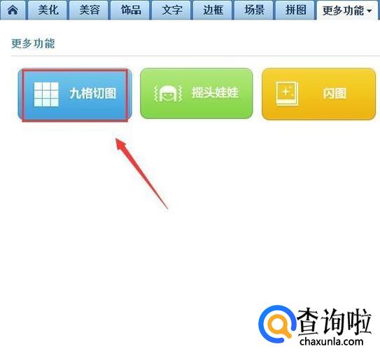 点击更多功能选项在其操作界面内找到九格切图选项,如图所示: