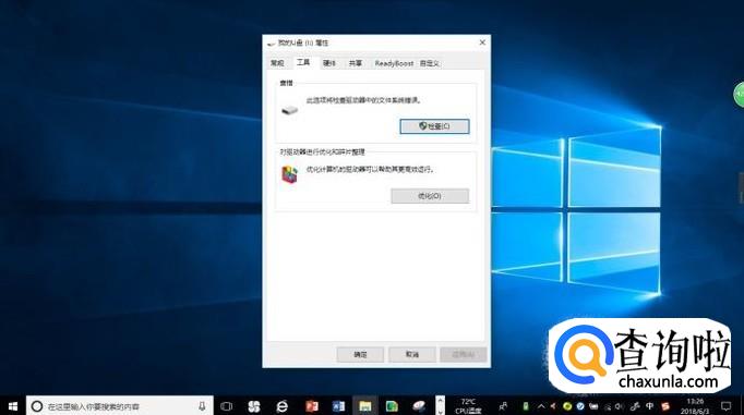 弹出"我的U盘 属性"对话框,如图所示。选择"工具"标签,下步将进行SD存储卡受损的故障排除。