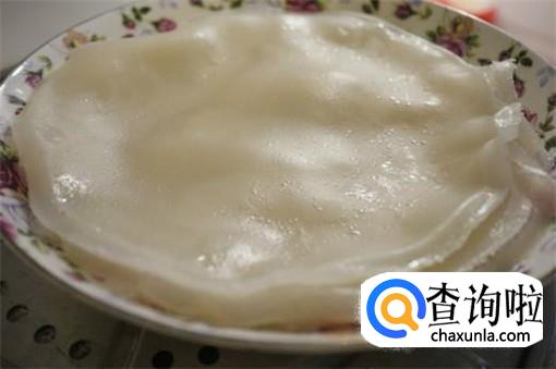 每个凉皮只要蒸制两分钟只有即可蒸熟,我们将它揭下来放凉备用。