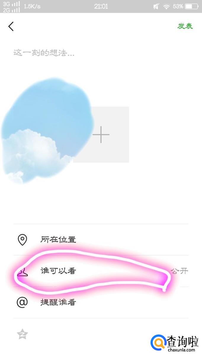 紧接着,我们分享生活是,屏幕下方会出现“谁可以看”我们点击它