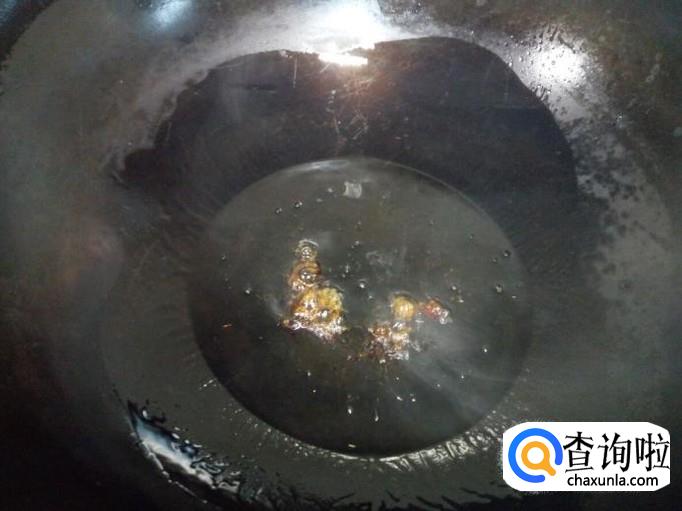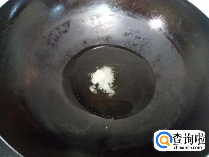 锅里放入油加热,放入一小儿匙白糖,炒糖上色。