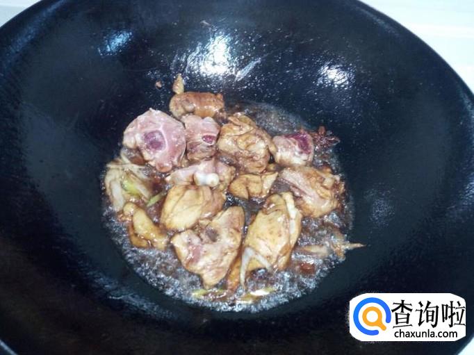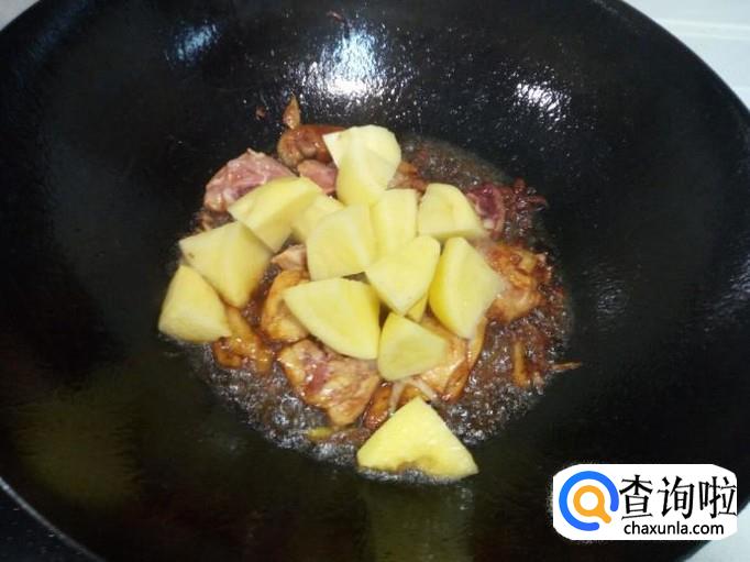 炒至鸡腿上色后,放入土豆翻炒。