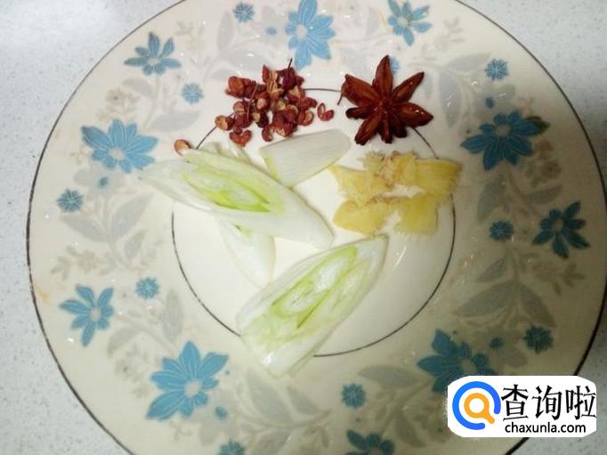 切好葱,姜,准备好花椒,八角备用。