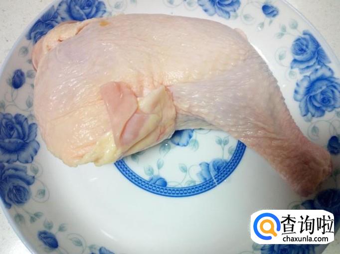 鸡腿用水清洗干净,控干水分,剁成块。
