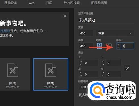 例如我们画板输入了4,我们就能够快速创建4个相同宽度高度的画板,接下来开始添加页码。