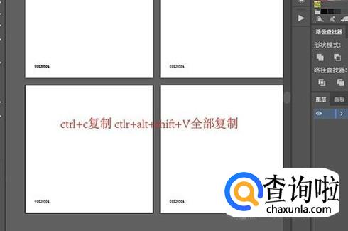 接着点选文本图层,ctrl+c进行复制之后,再按ctrl+shift+alt+v进行全部复制粘贴,快速添加4个相同位置的文本。