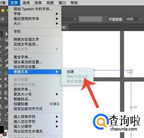 点选4个文本图层之后,在上方菜单中选择“文字-串接文本-创建”