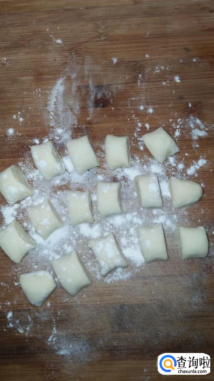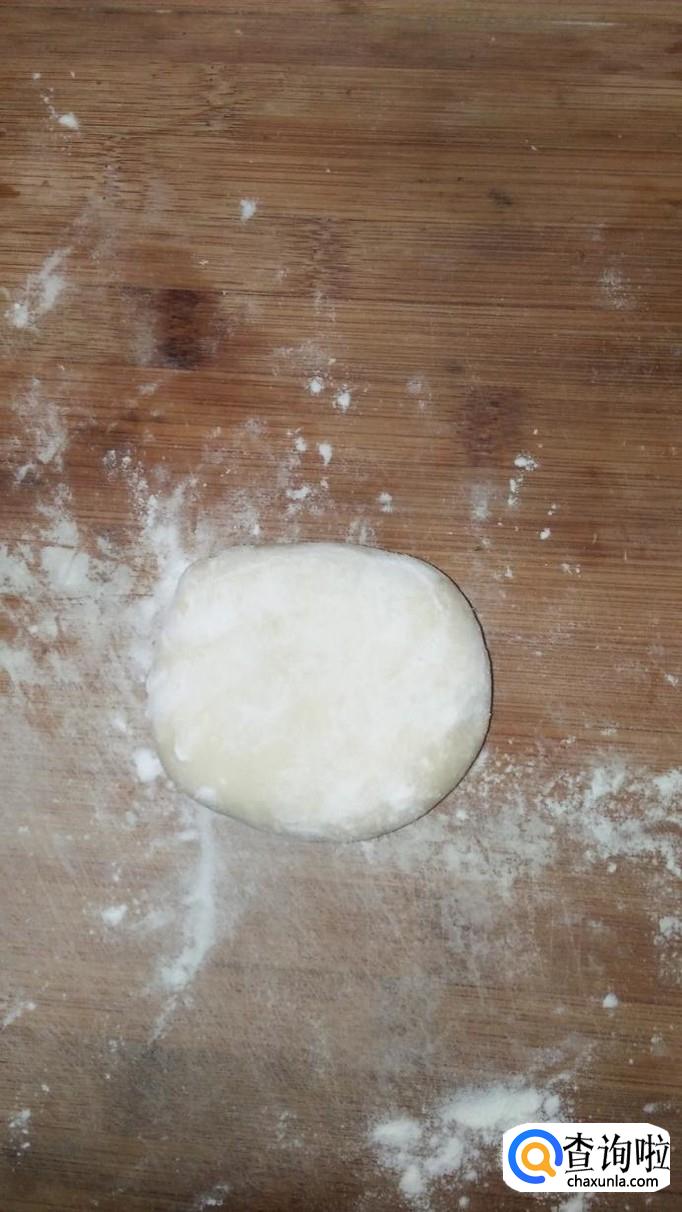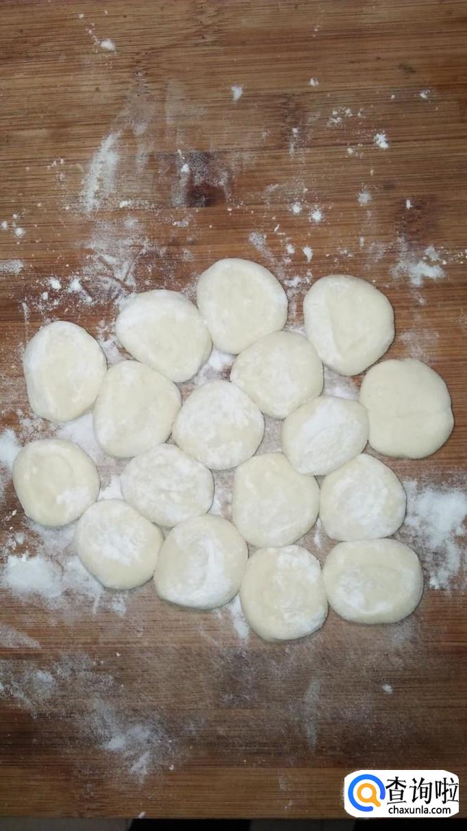 将醒好的面团再揉好,然后分成小剂子,用手按扁,用擀面杖擀开,开始做饺子皮。