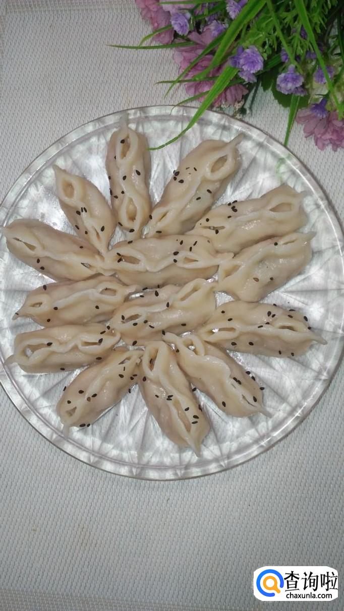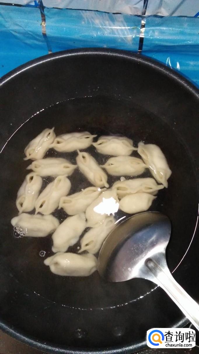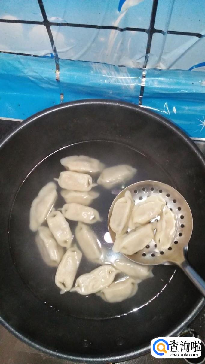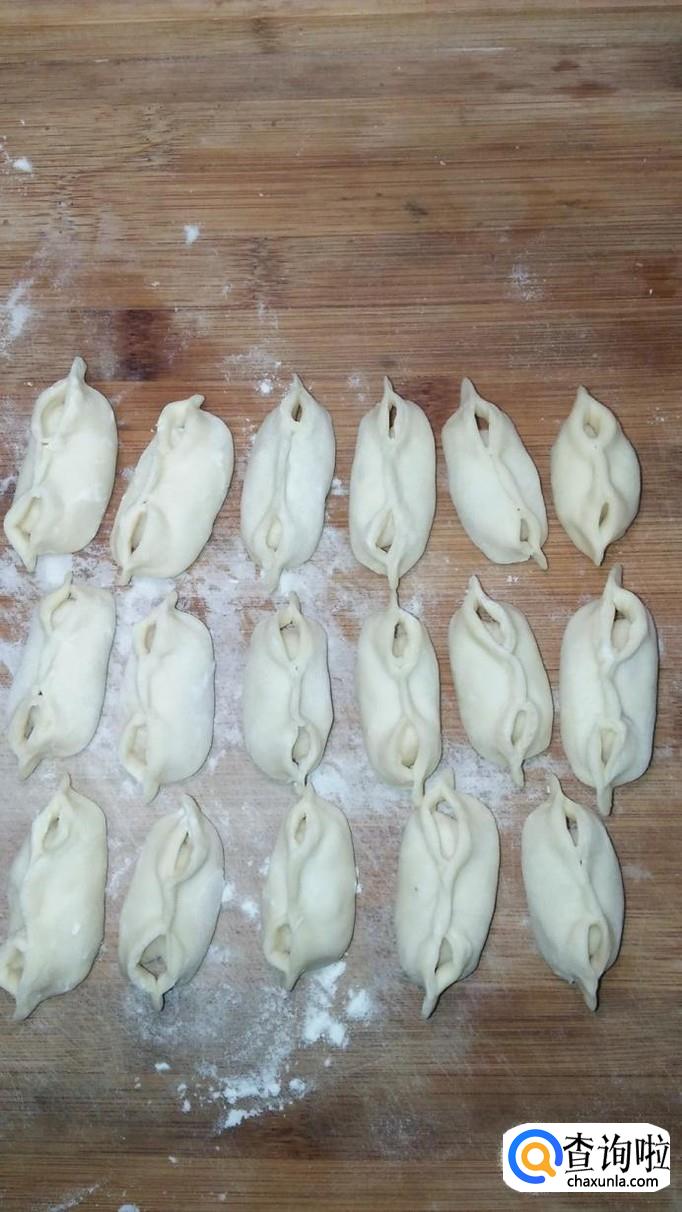 按照同样的方法,将其余的水饺全部做好,锅中烧开水,水开后,将水饺放入锅中煮熟。