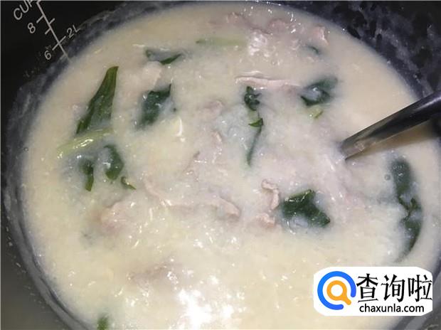 提前用电饭锅把白粥煮好,然后再加入腌制好的肉片,搅拌均匀,再煮十分钟。