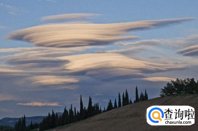 高层云:在阳光或月光照耀下,看上去像灰色的幕幔。如果湿空气靠近,云盘消失,云层变厚、变暗,可能会下雨,高可达2500~6 000米。