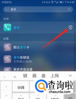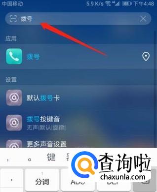 这时候就会出现一个搜索框,在搜索框里输入“拨打”两个字,下方就会出现“拨号”的图标。