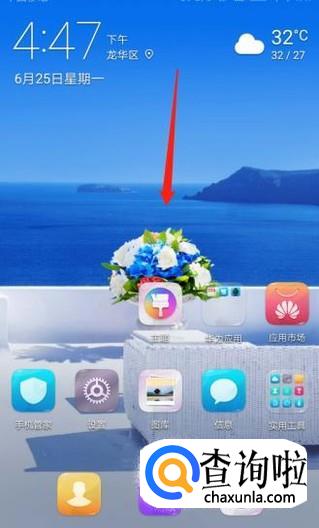 打开手机,在手机桌面往下滑动屏幕。