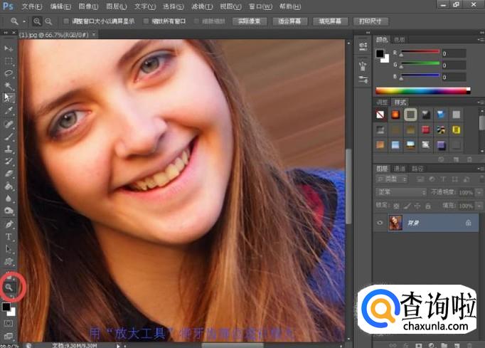 用“放大工具”将图像牙齿部位放大合适的大小;