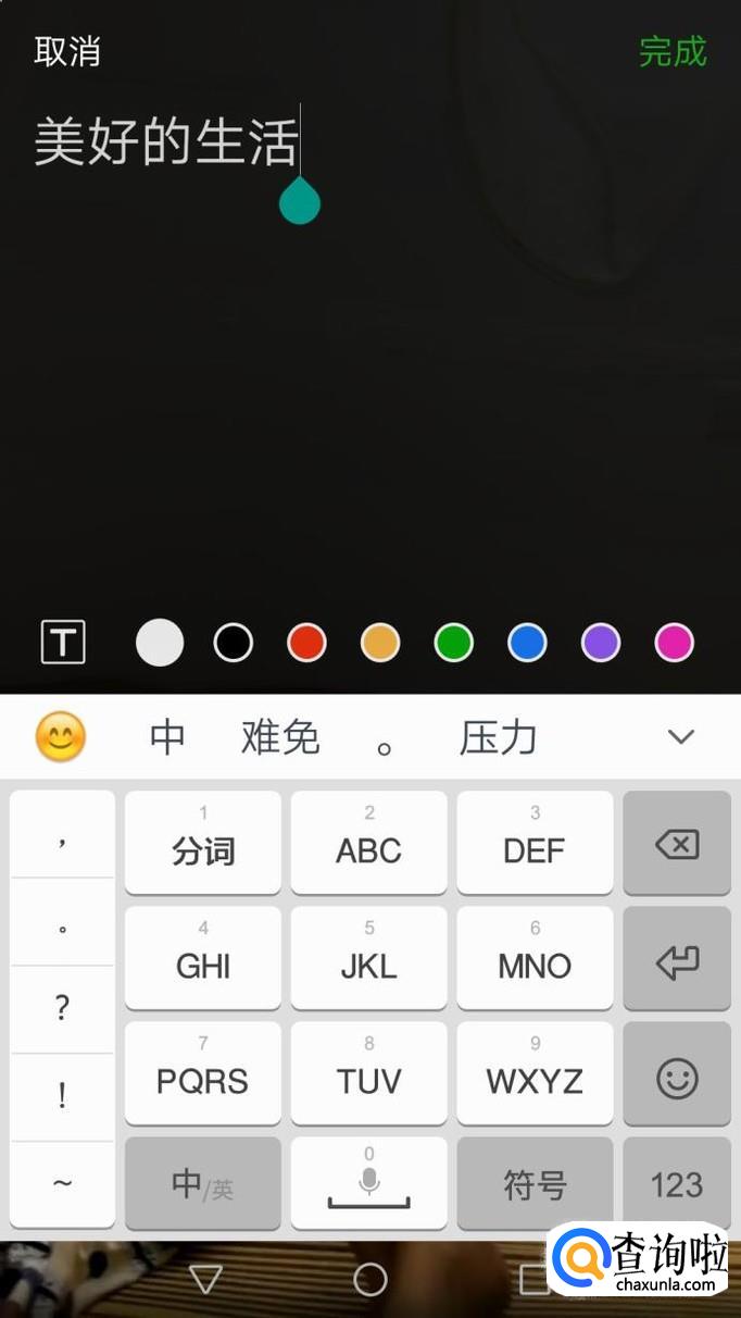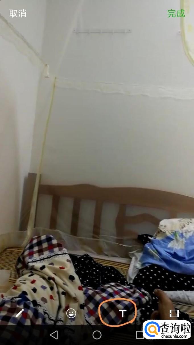输入文字后点击右上方的“完成”,视频的文字就添加好了,接着就可以发送到朋友圈啦!