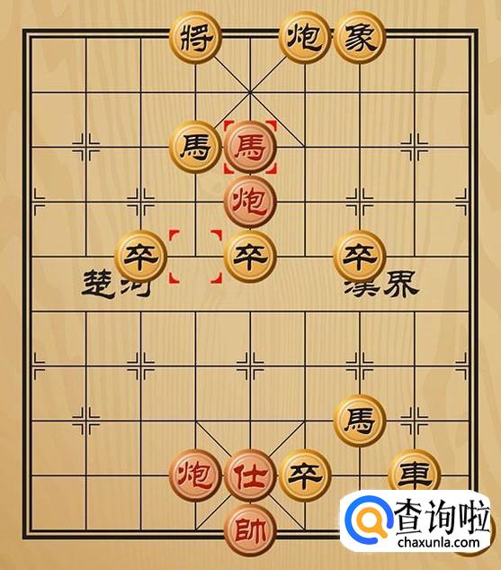 红方炮五平六将军,黑方马2进4阻挡。