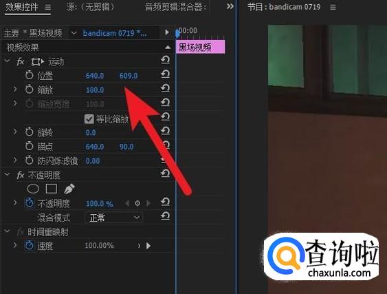 将黑场视频拖动到上层时间轴轨道中,匹配视频素材长度。