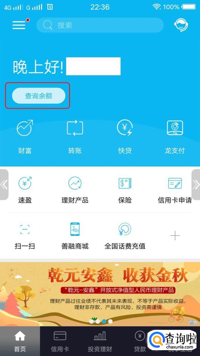 在首页点击“查询余额”,登录个人账户。
