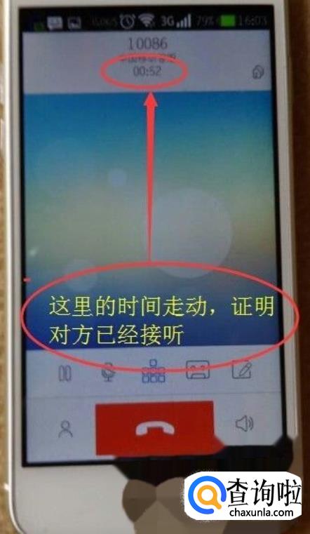 当电话拨打出去的时候,一定要确定对方接听了,才可以调加减通话音量。如何确认对方是否接听?就看看下面的图片: