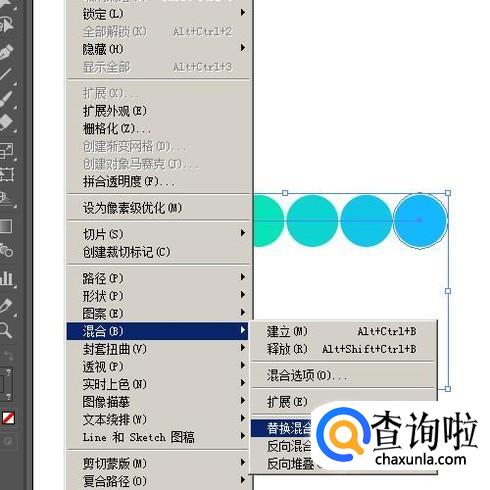 接着,点击对象选项卡,在弹出的下拉菜单中再点:混合,再点:替换混合轴