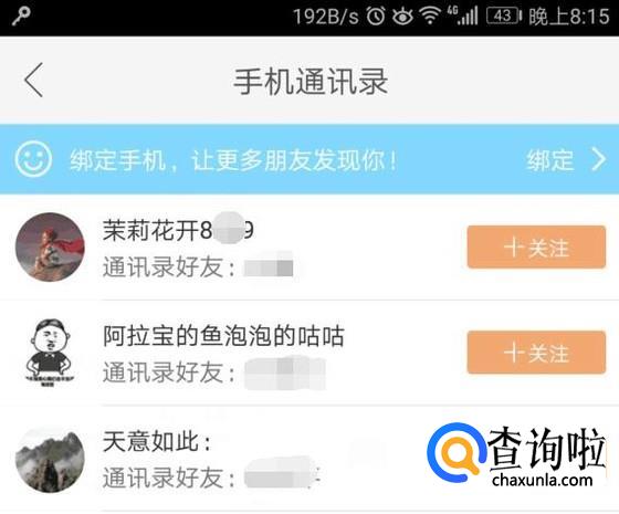 我们点击“关注”,我们就可以关注通讯录好友了,如图。