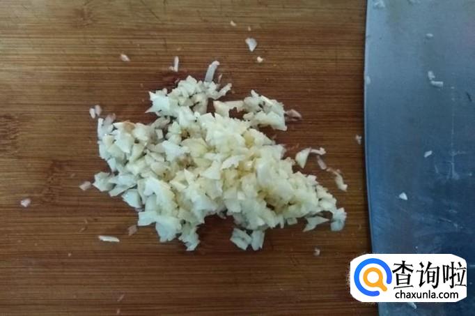 备蒜,喜欢吃蒜的,可以多切些蒜末,将蒜末撒在茄子上;