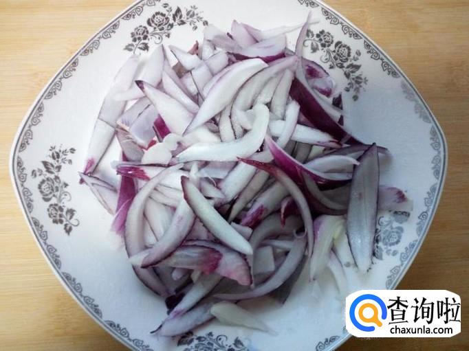 圆葱去皮,用水清洗干净,控干水分,切成丝。