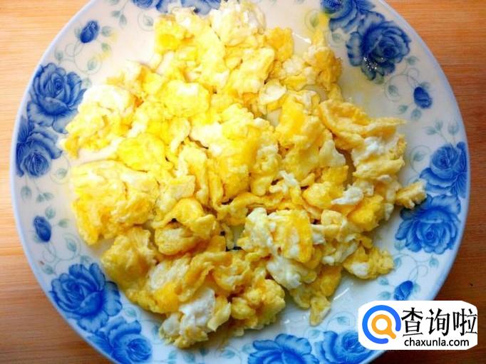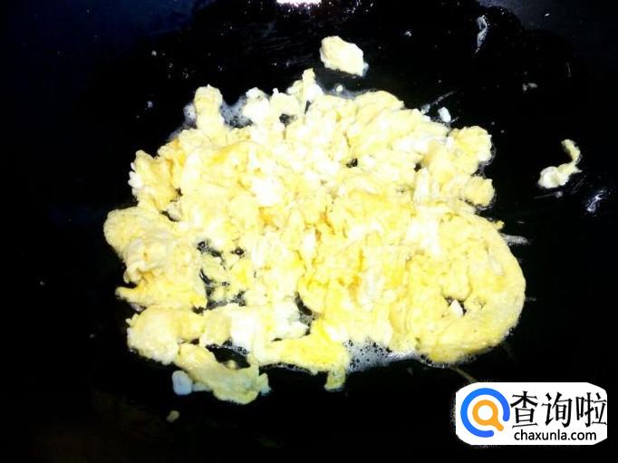 鸡蛋用锅炒出来,炒至八分熟,盛出备用。
