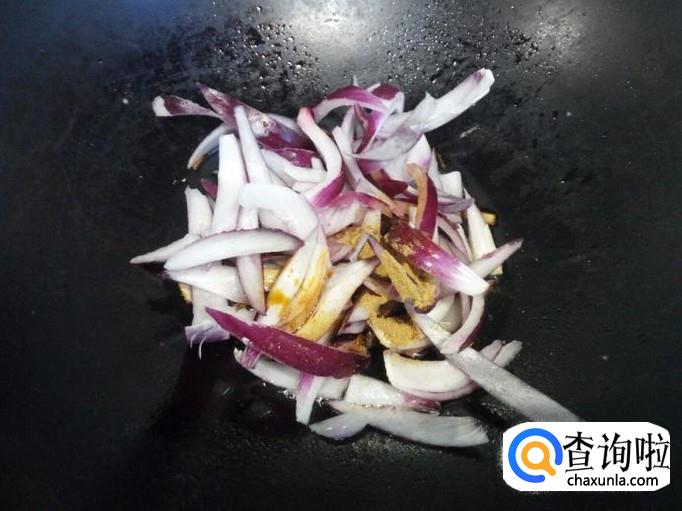 锅里放入油加热,油热后放入葱,姜爆锅。放入圆葱翻炒,放入五香粉,少许酱油,少许料酒,滴少许醋。