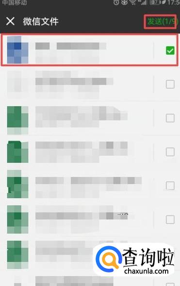 弹出的界面,我们点击选中一个音乐文件,然后我们点击右上角的发送就可以了。