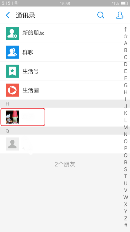三、进入后找到要从黑名单内移除的联系人,点击进入。