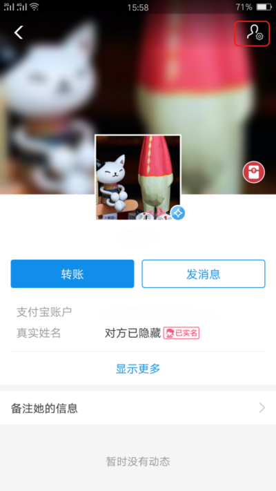 取消支付宝黑名单需要在手机打开支付宝进入后,找到“朋友”一项,点击进入。进入后,点击页面顶部红框内的人像符号。进入后找到要从黑名单内移除的联系人,点击进入。进入后找到右上角的人像符号,点击进入。找到“加入黑名单”一项,将这一栏的开关关闭即可将该联系人从黑名单里移除了。