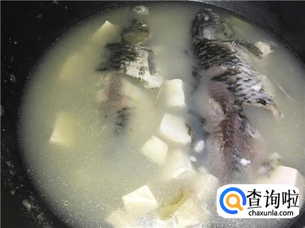 大火炖开后,转中火,炖10分钟左右,当加入的开水变成牛奶的颜色之后,即可关火,撒上适量的盐,搅拌均匀,出锅享受美味的鲫鱼汤了。