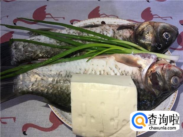 准备好两条新鲜的鲫鱼,一块嫩豆腐,两根葱,一块老姜。