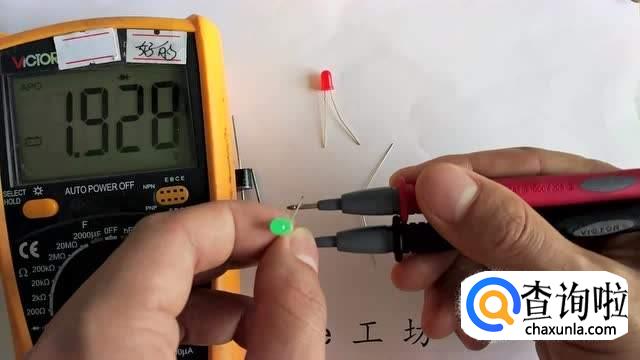 若用眼睛不易判别,也可以借助于万能表。将旋钮拨到通断档,将红黑表笔分别接在两个引脚。若有读数,则红表笔一端为正极;若读数为“1”,则黑表笔一端为正极。